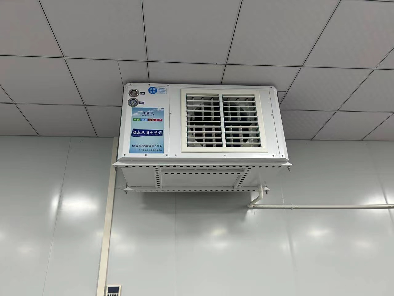 福泰蒸发冷空调和传统空调的降温原理是一样的,有压缩机,冷媒,蒸发器,散热,传统空调外机和外机是有区别的,它的外机主要是铜管外用风扇,风扇来给铜管里面的福力昂来降温,但是蒸发冷省电空调它不一样,它的外机是一个风扇,里面是装水的,它主要是通过水分的蒸发来给内机里面的福力昂降温,正常情况下工作的时候,这个压缩机它会产生很多很多的热量,它的热量要么是通过外部的风扇,要么是通过这种蒸发冷的水分把它降温,相对于传统的风扇来降温,这种水分蒸发的降温,它的能效会更高,蒸发冷省电空调大概是五匹可以管到200个平方左右,传统空调五匹才能管到60-80个平方,蒸发冷省电空调主要是靠着外面的水分蒸发给内机降温,相当于家用空调的效果。